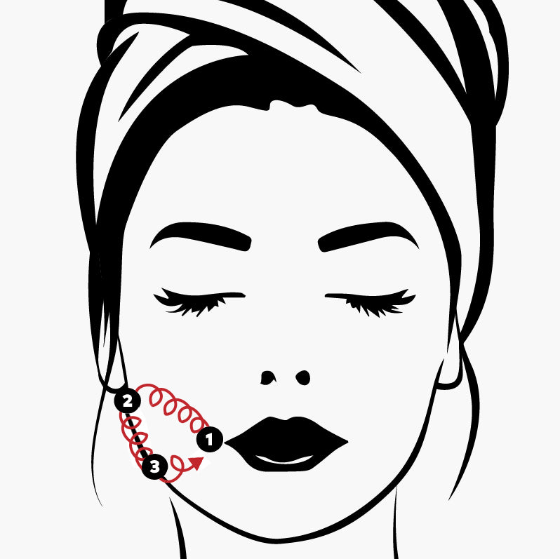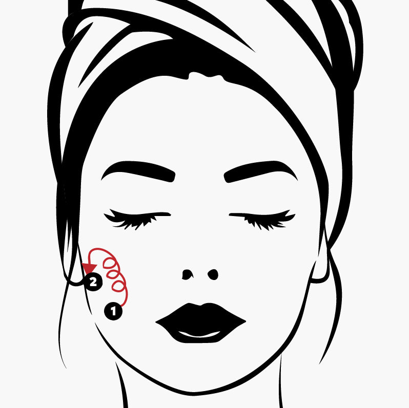 Tip: Glide in small, quick circular motions over each area 20 times.