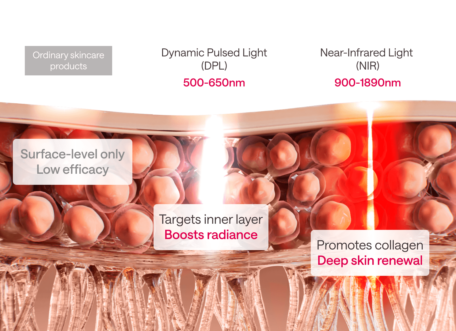 [Dynamic Pulsed Light]* Refers to the pulse light wavelength range reachable in DPL mode. Data based on third-party testing reports.