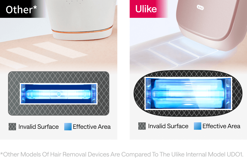 *Refers to the interval time between each flash when in Strong Hair Removal Mode*The hair removal area of 360 square centimeters in 1 minute is calculated based on the light emission port area of 3.3 square centimeters x (0.4s flash speed + 0.7s pulse interval) x dual pulses (two light emissions), using the product for 1 minute.