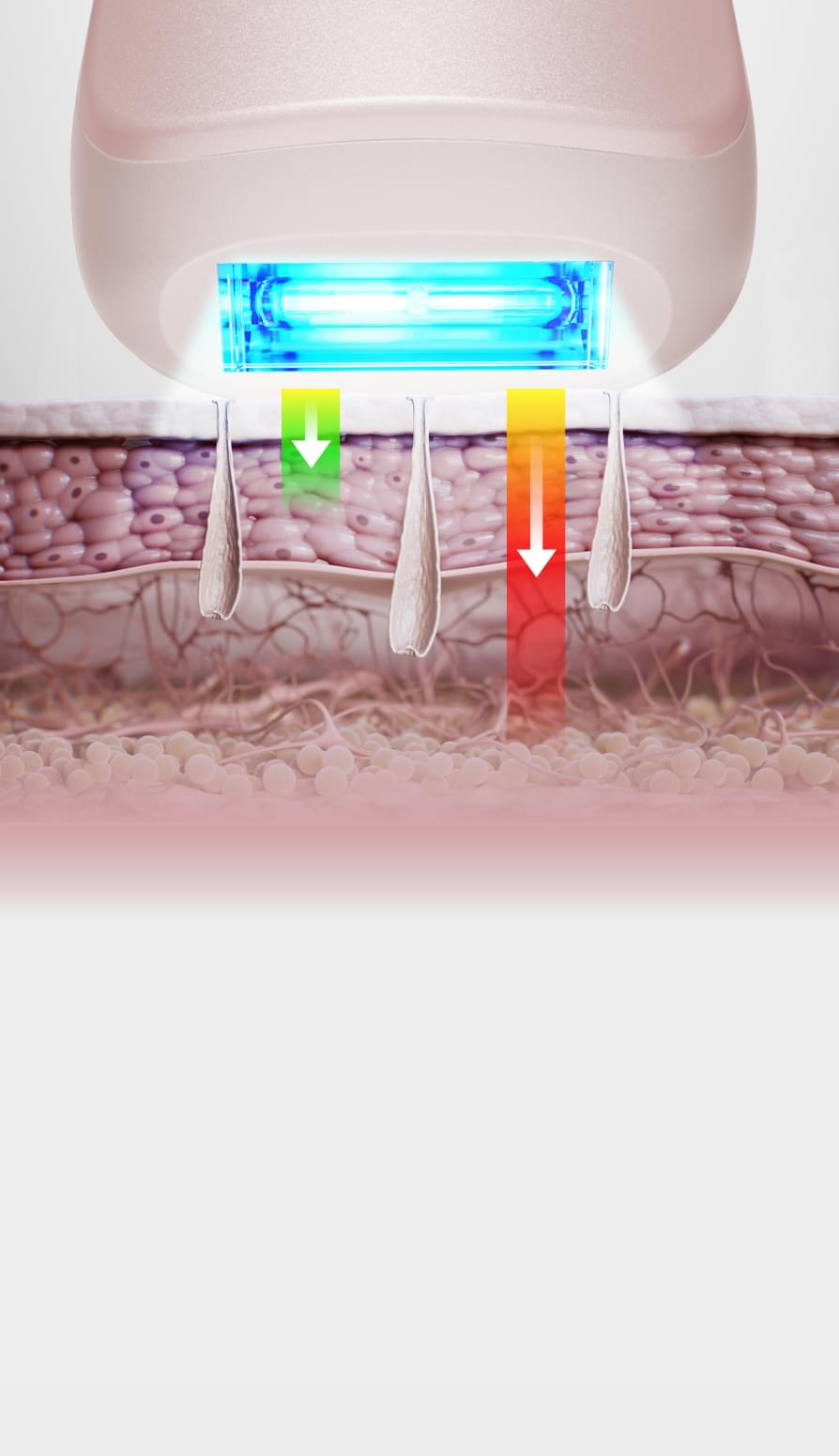 The hair removal effect depends on the energy level. Pressing the outlet firmly against the skin can make follicles fall flat, getting closer to the high-energy light source. As a result, a better hair removal effect is realized.